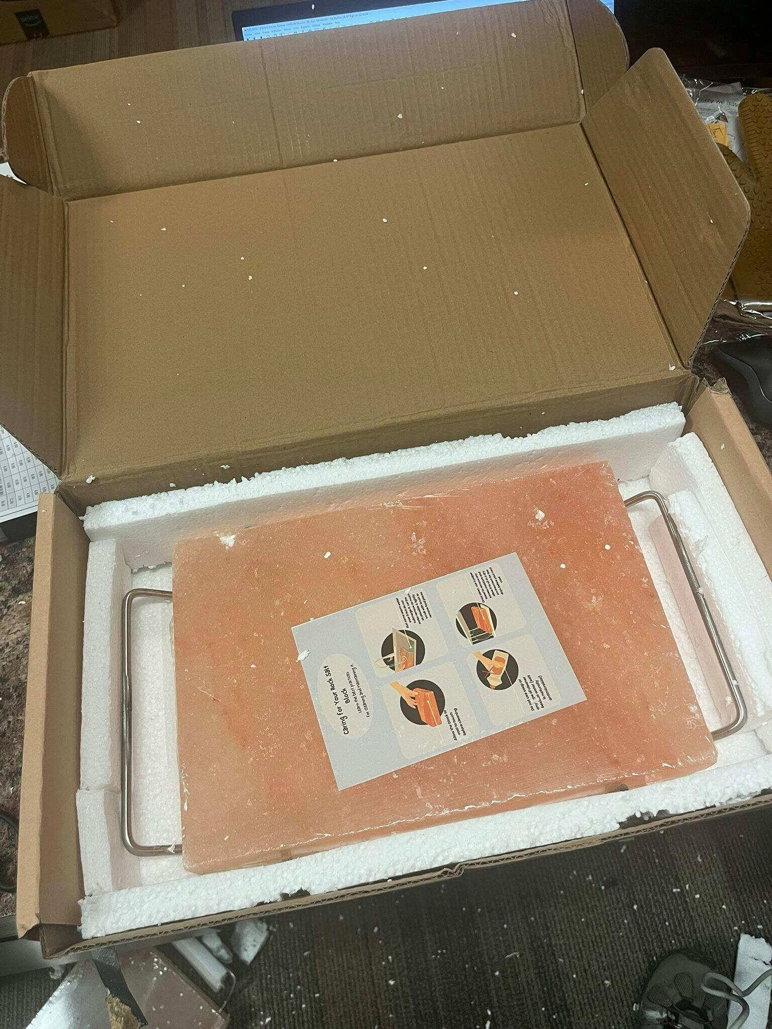 - [All-in-One Package]; Our bundle includes a 100% Natural Himalayan Salt Cooking Block and an Iron Steel Holder designed to prevent rust. It also comes with a silicon Gloves suitable for men, women, chefs, cooks, fathers, and dads. The cooking block measures 12 X 8 X 1.5 inches and is made from Kosher Food Grade Natural Himalayan Salt Rock.