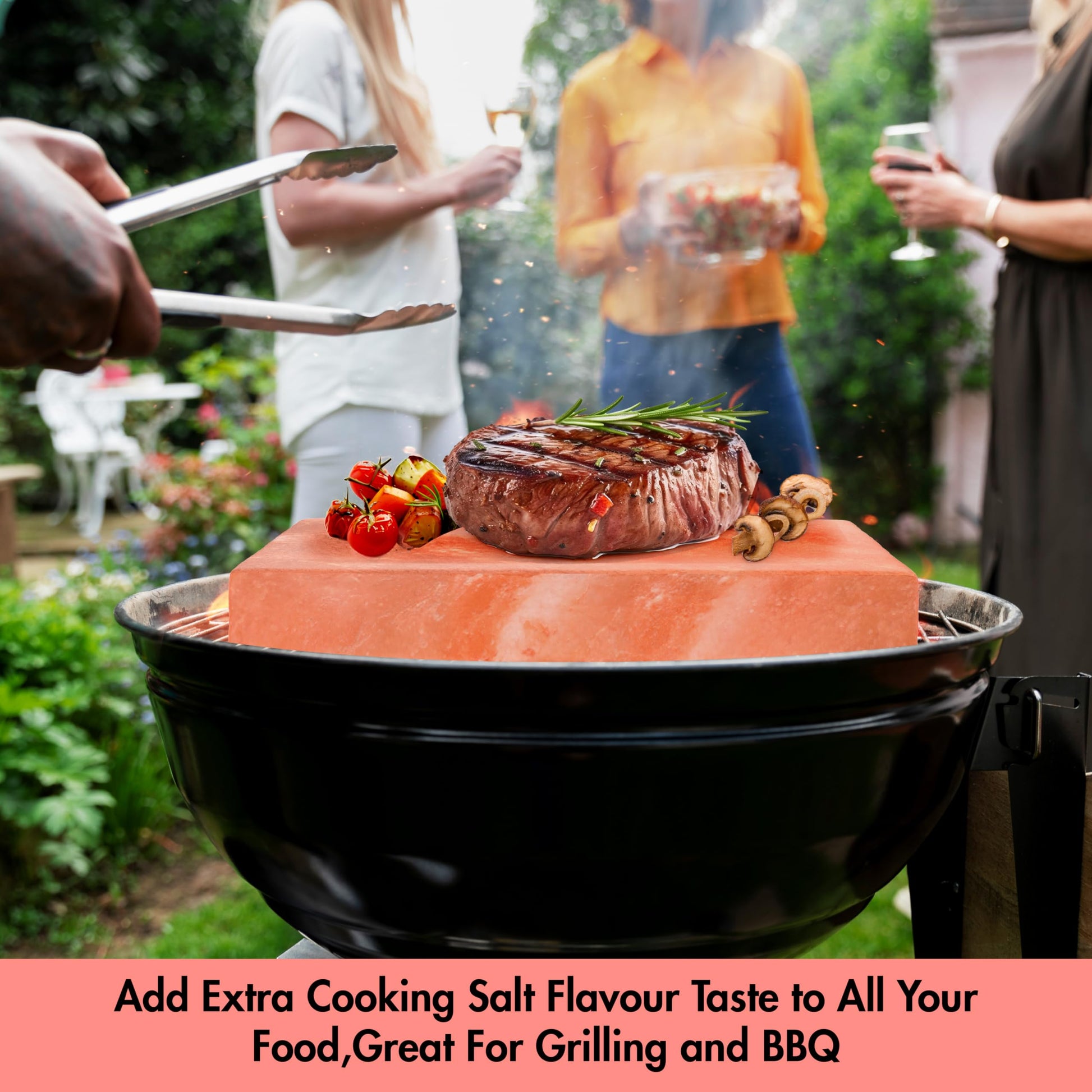 - [Rich, Enhanced Taste]; Elevate your meals with a sizzling, salty taste using our Himalayan Salt Block and Salt Block Holder set. Cook steak, seafood, and other meat on the stovetop or BBQ grill, chill in the refrigerator for cold dishes, and safely transport the Salt Block Cooking Stone to the table. Perfect for adding flavor to a variety of dishes, including steaks, fish, seafood, vegetables, and more.