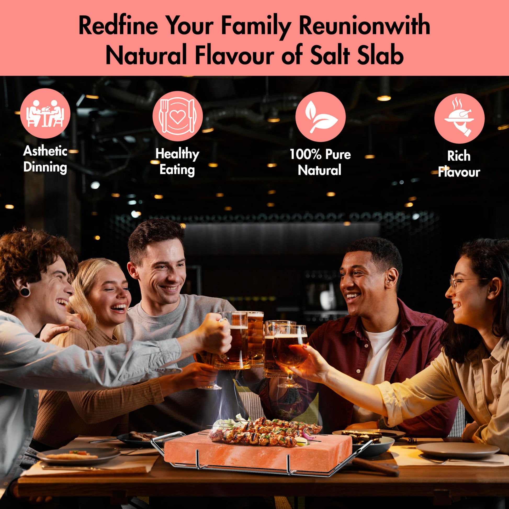 - [Elegant Serving Plate]; Enhance the presentation of your dishes w/the natural pink crystals of Himalayan Salt. Our Salt Block is perfect for serving chilled food in style. Simply place the Salt Block in the Holder, refrigerate for 1-2 Hours, and use it as a captivating serving plate. Whether you're serving hot or cold dishes, the Himalayan Salt tile effectively retains temperatures (up to 500°F). Impress your guests & elevate your dining experience w/this all-natural, eye-catching serving dish.