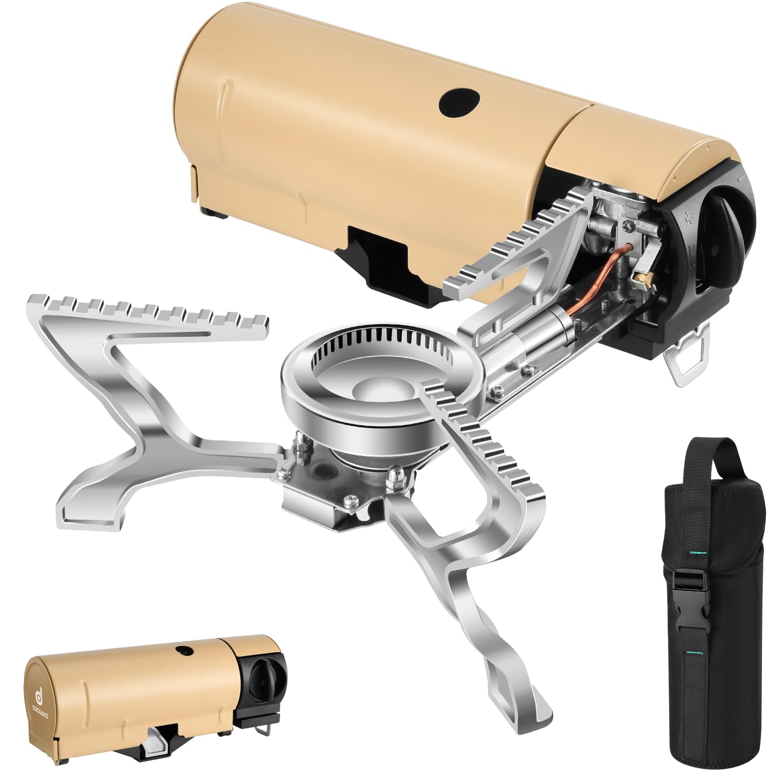 - Easy Setup - The backpack stove for camping has automatic locking device, open the cover and rotate the body to a 90-degree angle, put the butane tank, open the trivet Support. the operation is simple, convenient and fast.